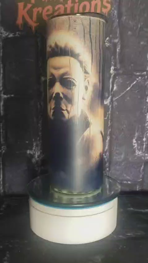 Introducing Michael Myers, the perfect tumbler for any Halloween lover! With its unique glow in the dark feature, you can enjoy your hot drink for up to 8 hours or keep your cold drink cool for up to 12 hours. Sip in style this spooky season with Michael Myers.