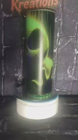 Keep your beverages at the perfect temperature and stand out this Halloween with our unique Oogie Boogie tumbler. Featuring a glow in the dark design, this tumbler can keep your drinks hot for up to 8 hours and cold for up to 12 hours. Sip in style and make a spooky statement with this tumbler.